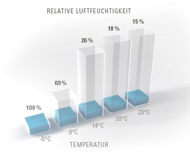 vlage od toplog zraka. Zato vlažnost u unutrašnjim prostorima često pada ispod